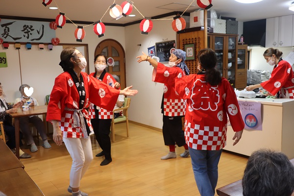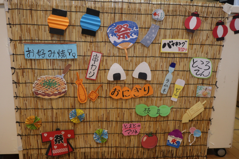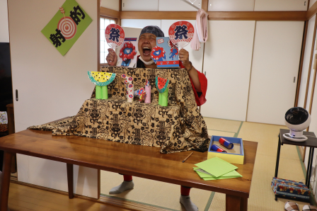 夏祭りの屋台で昔懐かしいゲーム、射的、一円玉落とし、ヨーヨー釣りなどのゲームを童心に帰って楽しみました。お楽しみの後は寝屋川音頭や炭坑節を踊り夏祭りの雰囲気を盛り上げます。